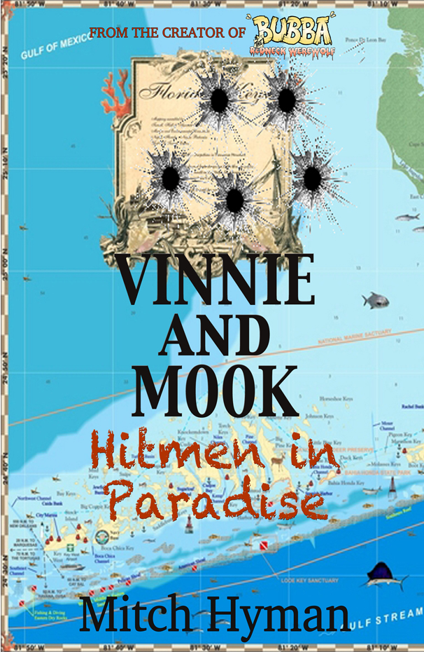 Words Take Flight Books presents all of the hitman horror and dark humor you'll find anywhere in a book cover. For the first time, you can read Mitch Hyman's "Hitmen Supreme" novella and novel together – and with only a brief intermission (if you can put it down that long). Hook, Line & Sinker: Wherein two hitmen turn a "friendly" fishing match into a deadly fight for gangland supremacy under the watchful eye of a powerful spirit – and her cookies. Hitmen in Paradise: Beneath the blazing Caribbean sky lurks an ancient, undying evil – and Vinnie and Mook unwittingly find themselves in a battle not just for their own lives, but for all of mankind. |